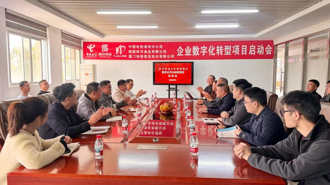 2026年2月6日,舜洋食品數(shù)字化轉(zhuǎn)型項目啟動會在舜洋總部(漳浦)召開。舜洋食品總經(jīng)理林炳義及公司領(lǐng)導(dǎo)層、漳浦電信分公司副總經(jīng)理唐藝鎮(zhèn)、快普董事長溫祝平,及三方項目組共同參與此次會議。